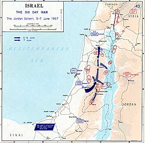 On June 5th, Israel decided to launch a pre-emptive attack on Egypt. Israel issued an appeal to Jordan to stay out of the war. Jordan refused and opened a heavy artillery barrage on both west Jerusalem and the Tel-Aviv area which forced Israel to counterattack. By June 8th the Israel Defence Forces defeated the Jordanian forces and captured the whole of Judea and Samaria. On the morning of June 9th, Israel attacked the Syrians on the Golan Heights. From these heights, Syria had shelled and destroyed 205 houses, 175 acres of orchards and 75 acres of grain.