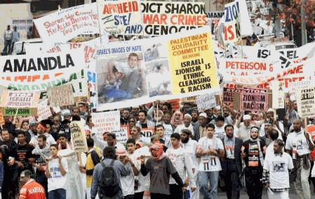 Sept 4….A statement adopted yesterday by some 3,000 non-governmental organizations (NGOs) declared that Israel is a "racist apartheid state" and guilty of "war crimes, acts of genocide, and ethnic cleansing. The draft statement expected to be adopted by a vote of governments this week also brands Zionism as being solely "based on racial superiority." The other ironic result of the conference, whose full name is World Conference on Racism, Xenophobia, and Related Intolerance, was to demonstrate just how alive and potent anti-Semitism is, in that it can be spread with impunity by formal international bodies. Not satisfied with their attempt to rob Israel of any shred of legitimacy, the NGOs even deleted clauses that opposed anti-Semitism. As Alan Baker, the Foreign Ministry's legal adviser put it, "The conference was turned into a circus for Israel-bashing. The head of the UN, Kofi Annan, announced that the Holocaust of the Jews in World War II should not be used to justify the "Israeli oppression of the Palestinians". The same people who have always denied there ever was a Holocaust in World War II were there demanding that Israel be liquidated and its population exterminated, this in the name of combating racism. The more fundamental question is whether it is the case that Anti-Zionism is simply a form of racism. The answer was demonstrated for all at Durban. Yes it is. The United States and Israel walked out of the world conference on racism in Durban, denouncing the "hateful language" of its draft declaration. The anti-Israel language that the United States found intolerable is daily fare for Israelis. It is a true reflection of the hate propaganda disseminated day and night – not only by Palestinian media, but by many Arab spokesmen and even by Israeli Arab leaders, including members of the Israeli parliament. "The Jews were branded as racists, ethnic cleansers, genocides, while the Arabs are depicted as innocent victims of Jewish fascists and murderers. Older Israelis are painfully reminded of the pre-state Arab pogroms against the Jewish communities of Palestine, and the infamous Mufti Haj Amin al-Husseini, who went to Berlin in 1938 to discuss with Hitler ways of annihilating the Jews of Palestine. Palestinians and Israeli Arabs are using the same language as their forbears, fighting as they did in the days before there was a State of Israel.