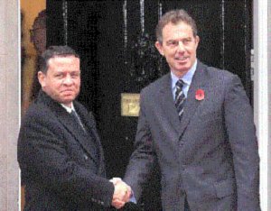 King Abdullah met with British Prime Minister Tony Blair November 9th to discus the aspects of Middle East peace, and how to implement security for the entire region. The concept includes acceptance of Israel by the Arab nations.