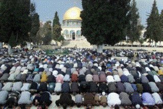 Nov. 17….Muslims pray in front of the Dome of the Rock mosque in Jerusalem at the start of the holy month Ramadan November 16, 2001. Ironically, unbeknownst to the poor Muslim people, they bow and pray in the opposite direction from the only place on earth that God ( Yahweh ) chose for his name! In reality, they are turning their backs to the Truth, and paying allegiance to a Lie, and a false god! And that is the way of the Devil; he gets people to turn their backs to God, and follow in any other direction. The day is coming however when Satan will turn attention to the Temple Mount, pictured behind the praying people shown here, and present himself before all ( Jew and Arab alike ) as the one God. ( known in the Bible as the Abomination of Desolation)