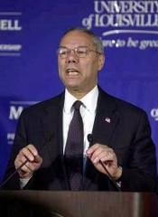 Nov. 19….In a speech delivered at the University of Louisville, Powell called for the creation of a state of Palestine beside Israel. He said Israel should end settlement activity in the West Bank and Gaza and insisted that the Palestinians must stop terrorism against Israelis. But he did not outline a U.S. formula for getting around the impasse on the future status of Jerusalem and the fate of 4 million Palestinian refugees and their descendants. Powell said the sides must implement the recommendations of the international commission led by former U.S. Sen. George Mitchell, which advocates a cease-fire, and a series of confidence-building measures and renewed peace talks.