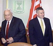 Nov. 29….Prime Minister Ariel Sharon told United States envoys to the Mideast Anthony Zinni and William Burns during their meeting this week that Palestinian Authority Chairman Yasser Arafat "had established a coalition of terror with Hamas, Islamic Jihad, Hezbollah, PLO, Tanzim and Force 17 (Arafat's presidential guard)." There can be no compromise with terrorism," Prime Minister Ariel Sharon said. "As long as there is terrorism, it will be impossible to attain a peace settlement."