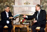 Jan. 28….(MSNBC) The screws were tightened on Iraq on Tuesday as Russia, for the first time, suggested it might back a war if Baghdad fails to cooperate with U.N. inspectors. As the United States agreed to disclose intelligence information about Iraq's weapons program and alleged links between Saddam Hussein's regime and al-Qaida, Russian President Vladimir Putin said he might support “different, tougher” options if Iraq hampered the U.N.-mandated inspections. Putin said inspectors have not reported obstacles to their work in Iraq and diplomatic measures to resolve the crisis have not been exhausted. But if Baghdad creates future difficulties, he said, Russia could move closer to the U.S. position on Iraq. “If Iraq begins to make problems for the work of the inspectors, then Russia may change its position and agree with the United States on the development of different, tougher U.N. Security Council decisions,” Putin said during a visit to Ukraine. Russia's new position leaves France, and China to a lesser extent, the main holdouts among the five permanent council members. Both nations have urged a diplomatic solution while calling for more time for inspectors to complete their work. The White House hopes the new intelligence data it plans to release, as well as U.S. backing for a limited extension for the inspectors' work will persuade other nations to back a broad coalition. Washington has insisted it doesn't need a new resolution to launch an attack on Iraq, but the White House would prefer a U.N. mandate.