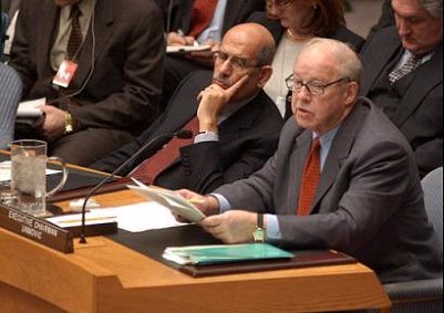 Jan. 27….Chief U.N. weapons inspector Hans Blix delivered his inspections report to the United Nations in New York this morning. Hans Blix said Baghdad had not genuinely accepted the U.N. resolution demanding that it disarm, while nuclear inspection counterpart Mohamed ElBaradei said his teams needed an additional "few months" to complete the search. (FOJ Note: El Baradei is An Eghyptian nationalist who fought against Israel in 1967 & 1973) U.S. Ambassador John Negroponte said he heard nothing that "gives us any hope that Iraq will disarm" voluntarily, removing the need for the United States to take military action. Noting that Iraq had failed to disarm in the 12 years since the end of the 1991 Gulf War, he said U.S. monitoring of the inspections showed "Iraq is back to business as usual" and cautioned the United Nations Security Council not ease pressure on Baghdad. "They are not cooperating unconditionally. In the days ahead, we believe the council and its member governments must face its responsibilities," Negroponte said. Iraq's Ambassador Mohammed al-Douri said, "Iraq is clear of weapons of mass destruction." ElBaradei said inspectors had found no prohibited nuclear activity at new sites visited in Iraq. Blix said Baghdad was cooperating on access but needs to do more on substance. "Iraq appears not to have come to a genuine acceptance, not even today, of the disarmament that was demanded of it," Blix said at the beginning of a crucial assessment on 60 days of weapons inspections. Blix, said it was not enough for the Iraqis to "open doors." "It would appear from our experience so far that Iraq has decided in principle to provide cooperation on process, notably access. A similar decision is indispensable to provide cooperation on substance in order to bring the disarmament task to completion, through the peaceful process of inspection, and to bring the monitoring task on a firm course." Touching on the question of how much time inspectors need, Blix said he shared "the sense of urgency" to achieve disarmament within "a reasonable period of time." ElBaradei said his inspectors were making good progress and should not be hampered by deadlines. "We have to date found no evidence that Iraq has revived its nuclear program since the elimination of the program in the 1990s. However, our work is steadily progressing and should be allowed to run its natural course.