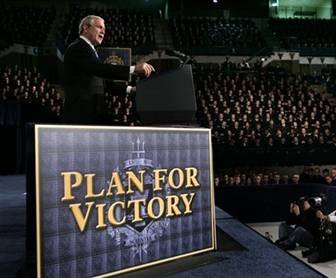Nov. 30….(My Way) President Bush countered diminishing support for the US-led Iraq war on Wednesday in a speech outlining what he believes must be accomplished before withdrawing any forces. Meanwhile US and Iraqi troops launched an operation in western Iraq to clear insurgents from a suspected safe area used to make car and roadside bombs, the military said Wednesday. The campaign came as President Bush defended his Iraq policy in a major speech, saying more Iraqi security forces are increasingly taking the lead in battle but that "this will take time and patience." About 1,500 US Marines from the 13th Marine Expeditionary Unit, 500 U.S. soldiers and 500 Iraqi soldiers were taking part in Operation Iron Hammer near Hit, 85 miles west of Baghdad, a US Marine statement said. The forces would concentrate efforts in the Hai Al Becker region, where US and Iraqi troops rarely patrol, it added. "The Hai Al Becker region is suspected to be an al-Qaida in Iraq safe area and base of operations for the manufacture of vehicle car bombs, roadside bombs," the military said. It added that the area is believed to be a stopping point for insurgents traveling down the Euphrates River from Syria into Iraq. President Bush did not indicate whether the terrorists now in Iraq had anything to do with the 2001 terror attacks in the United States, but he powerfully linked the two, saying they "share the same ideology." The President’s national strategy for wining in Iraq speech did not satisfy critics who've called for a definitive timetable for troops to pull out, saying it would send the wrong message to terrorists and that certain conditions must be met first. "As Iraqi forces gain experience and the political process advances, we will be able to decrease our troop level in Iraq without losing our capability to defeat the terrorists," Bush said. He rejected calls by some members of Congress that US forces withdraw immediately. "Setting an artificial deadline to withdraw would vindicate the terrorist tactics of beheadings and suicide bombings and mass murder and invite new attacks on America," Bush said. "To all who wear the uniform, I make you this pledge: America will not run in the face of car bombers and assassins so long as I am your commander-in-chief."