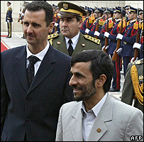 With full ground combat now going on in many locations, Syrian dictator Bashar Assad announced today that his military forces have been placed on the highest state of alert. He said Syria could not stand by while “Israeli aggression destroys our brotherly neighbor of Lebanon.” This came as Israeli Defense Minister Amir Peretz warned that the IDF would fire at any vehicle carrying arms from Syria into Lebanon, as it did overnight. Another Air Force strike was reported near the border today, along with the bombing of several Hizbullah positions in the Bekaa Valley just west of Syria. Despite the action, Peretz added that Israel has no intention to enter a war with the Syrians, who possess a substantial air force, a large army and thousands of Scud ballistic missiles and chemical capability. Various media reports say Iranian missile batteries have recently been set up in central Syria which can strike most portions of Israel as well. Military analysts here in Jerusalem continue to suspect that both Hizbullah and Iranian leaders are putting intense pressure on the Assad regime to open another war front on the stragtgic Golan Heights, captured from Syria during the 1967 Six Day war. Such concerns were intensified when Iran’s foreign minister flew to Beirut yesterday to hold “urgent talks” with his Lebanese counterpart. Afterwards he told a press conference that the Islamic regime ruling Iran was offering its “full support to Lebanon’s efforts to confront the criminal Zionist aggressors.”