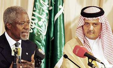 Saudi’s, Russian’s see Consensus for Mid-east Peace Sept. 22….(AP) Arab countries have reached a "very significant" consensus after the recent war in Lebanon that there must be a new start with fresh ideas to the Middle East peace process, Saudi Arabia's foreign minister said Thursday. Foreign Minister Prince Saud al-Faisal of Saudi Arabia and Russian Foreign Minister Sergey Lavrov, in separate interviews with The Associated Press around the meeting of the UN General Assembly, spoke of the urgency for an "end game" that could give a glimmer of hope to both sides in the Middle East by resurrecting a process bogged down for three years. At a Security Council meeting later Thursday, Bahrain's Foreign Minister Shaikh Khalid Bin Ahmed Al-Khalifa called for initial negotiations between Israel and the Arabs with a concrete timeframe, as well as a report from UN Secretary-General Kofi Annan on the best way to hold those negotiations. He reiterated the long-standing Arab demands that a final settlement include Israel's full withdrawal from the Palestinian territory, resolve the problem of Palestinian refugees, and create a Palestinian state with its capital in Jerusalem. "We have in the past witnessed the horrors of war; however, our peoples are today determined not to see further such horrors," Shaikh Khalid said. "We have a good chance now to obtain peace and should not allow it to slip away." Lavrov said the mood is not limited to Arab countries; agreement also is growing in Russia and among other outside power brokers overseeing the peace process that it must be re-energized to stop more problems from developing. The solution lies in working for a comprehensive pact that would cover differences between Israel and the Palestinians, the Syrians and the Lebanese, he said. Unless the world acts quickly to increase hope among Arab youth, Lavrov warned, it could lose a whole generation in the region to extremism. "We have found for the first time probably a consensus that is very significant about the need of restarting the peace process," al-Faisal said. His emphasis on consensus was the strongest statement yet by an Arab nation on the need to revive efforts to end the Arab-Israeli conflict, and was echoed by the foreign ministers who attended the ministerial meeting of the Security Council. Since the end of Israeli-Hezbollah fighting in Lebanon on Aug. 14, the leaders of Egypt, Jordan, Saudi Arabia and Syria have been saying now is the time for a new push in the peace process to prevent future conflicts. The Arab League viewpoint is that any revitalized talks "concentrate on the important issues, rather than the process itself, in other words, the final status negotiation elements like the border, Jerusalem, Palestinian rights and so forth." Faisal said he was encouraged that President Bush is showing a "new concentration" on the Middle East peace process. But he said Washington still has trouble being seen in the Arab world as an honest broker. "There is perceived inclination on the part of the US to forgive everything that Israel does and take to task anything that the Palestinians do," he said. There was, particularly during this session of the United Nations, no lack of interest on the part of the US President about the Middle East peace process. His whole speech, as a matter of fact, was on the Middle East," he said, referring to Bush's speech to the General Assembly on Tuesday. "And I think that shows a new concentration on not only the process but I hope substance of peace." Washington increasingly is coming to the view that peace between Palestinians and Israelis will help its other interests in the region, including fighting terrorism, he added. Lavrov, the Russian foreign minister who was interviewed in a room just off the General Assembly hall, said he regards the timing of the Arab initiative as "very important," coming shortly after the eruption of war between Israel and the Hezbollah guerrilla movement in Lebanon and at a moment when the trends elsewhere in the region were "worrying." "The war in Lebanon clearly showed that force cannot resolve problems in the Middle East and force always gets a forceful answer," Lavrov said. "We are risking to lose a generation in the Middle East," he said. "A couple of more years, and I am afraid this generation would be totally disappointed in any promises of peace and would be much more susceptible to another way of thinking and acting," he warned. The Russian minister said that both the Quartet of countries involved in sponsoring Middle East peace attempts and the Arab League share the idea that there must be an "end game" that would give both Israelis and Arabs a goal for a full and comprehensive peace involving Israel's conflicts with the Palestinians, the Syrians and the Lebanese.
