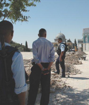 Richman contends that the Temple remains are being "purposely destroyed with no supervision," calling the government's tolerance of the construction "complicit cooperation." According to a report by WorldNetDaily, Prime Minister Ehud Olmert personally gave permission for bulldozers, steam shovels and other heavy equipment to be used to dig the trench. "This is an extraordinarily serious offense," Richman states. "A corrupt, spiritually bankrupt government is allowing Judaism's holiest site to be trashed because of political agreements to officially hand over the Temple Mount to the Palestinian Authority. Jews in Israel and abroad are asleep, and have not awoken to the importance of the Temple in Judaism or the desecration of this holy site being performed daily by the Wakf." The Israel Antiquities Authority approved the construction despite archaeologists’ concern that precious artifacts are being destroyed. The Authority, which digs for religious artifacts across the State of Israel, has not inspected construction on Judaism's holiest site even once since the work began, despite continuous calls for the construction to be supervised and halted. The police say they will not act since the Antiquities Authority approved the dig. The Wakf has denied that any Jewish artifacts have been discovered during the dig, but new photos of work on the Mount belie the claim, clearly showing what is likely to be an ancient piece of carved wall. The wall in question is from the outer wall of the Temple itself, as opposed to the Western Wall, which is a remnant of the retaining wall around the larger Temple platform.