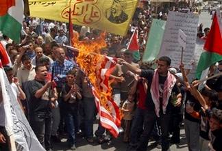 May 15….(FOJ) Palestinians in Damascus burn a US flag during a demonstration marking Israel's 60th anniversary. Damascus is home to many Palestinians and various terrorist organizations that are dedicated to Israel’s total annihilation.