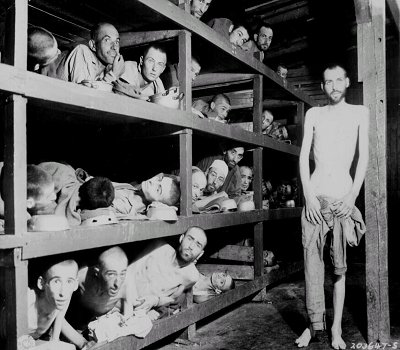 The Valley of Dry Bones has been the plight of Israel's dispersion experience in the world. From out of the dusty pits of the world however, God has providentially oversaw the rebirth of the state of Israel and the re-gathering of Jews from all around the world to the tiny sliver of the promised Land. Someday, God will fulfill the prophecy of Ezekiel and save Israel, and breathe the spirit of life into them. Israel is back in part of its land today, which symbolizes the physical resurrection (up out of grave-bones with sinew) of their nation, but still they have not experienced the breath of spiritual union with God. God is yet working through the affairs of all mankind to work his greatest miracle ever, when he will save Israel and bless all nations through her salvation. These pictures vividly display the reality that Israel (Jew) has endured the grave of the Holocaust, but has that God saved a remnant to rebuild his fallen people. Shown here are slave laborers in the Hitler's Buchenwald concentration camp near where many Jews had died from malnutrition before U.S. troops of the 80th Division entered the camp, April 16, 1945.